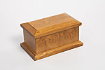 Handmade a high-quality pet ashes casket made from solid wood and has oak natural paint finishing. Bottom opening secures with a felted base.